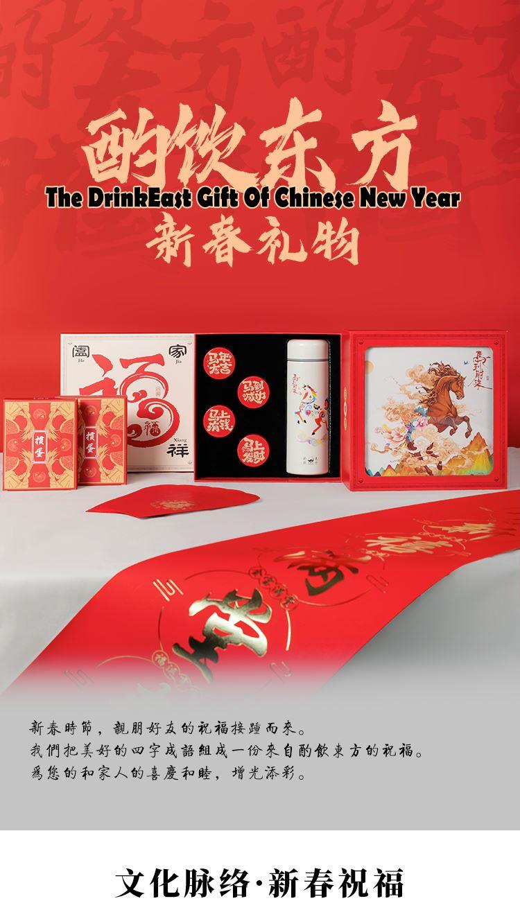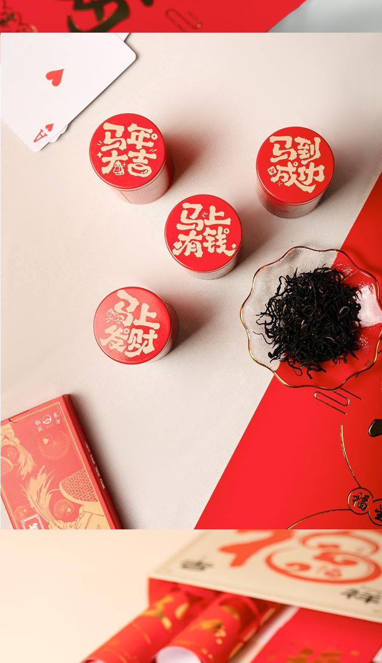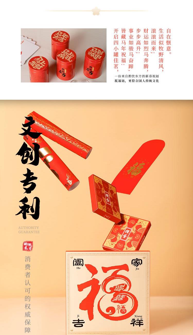配置: ①保溫杯*1 ②新春祝福·專用茶(碧螺紅茶4罐,15g/罐) ③春聯套裝+拜年紅包套裝+摜蛋撲克套裝