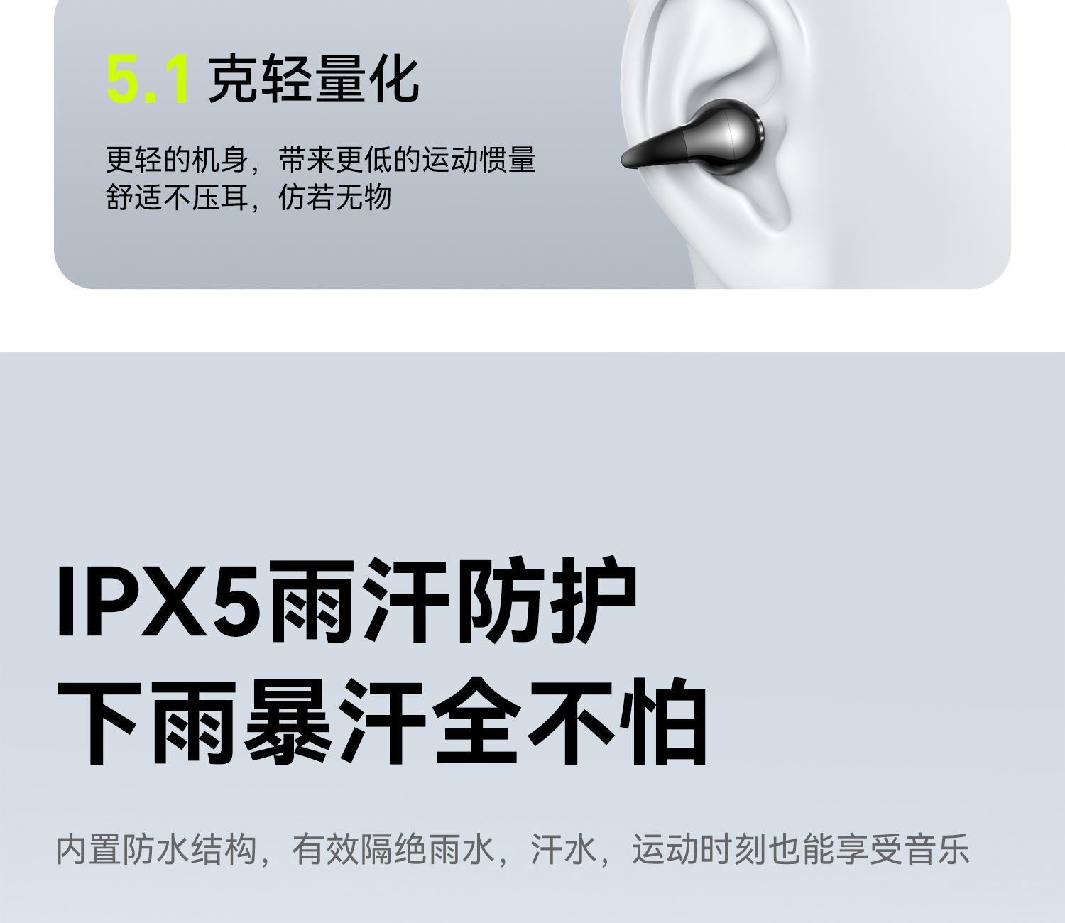 輕量化設計:單耳 5.2g + 整機 48g,佩戴舒適便攜